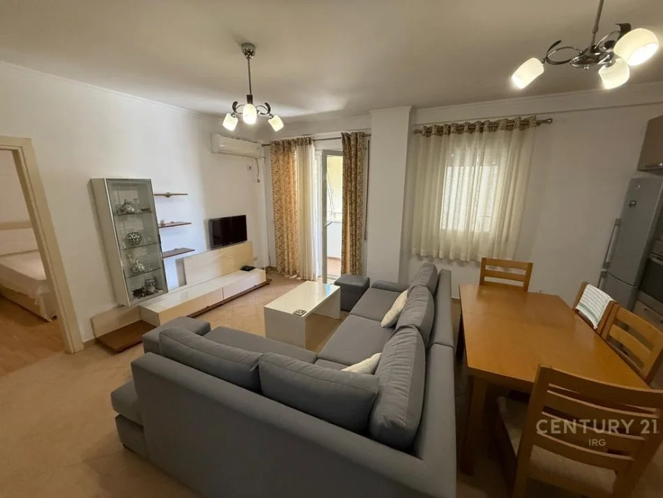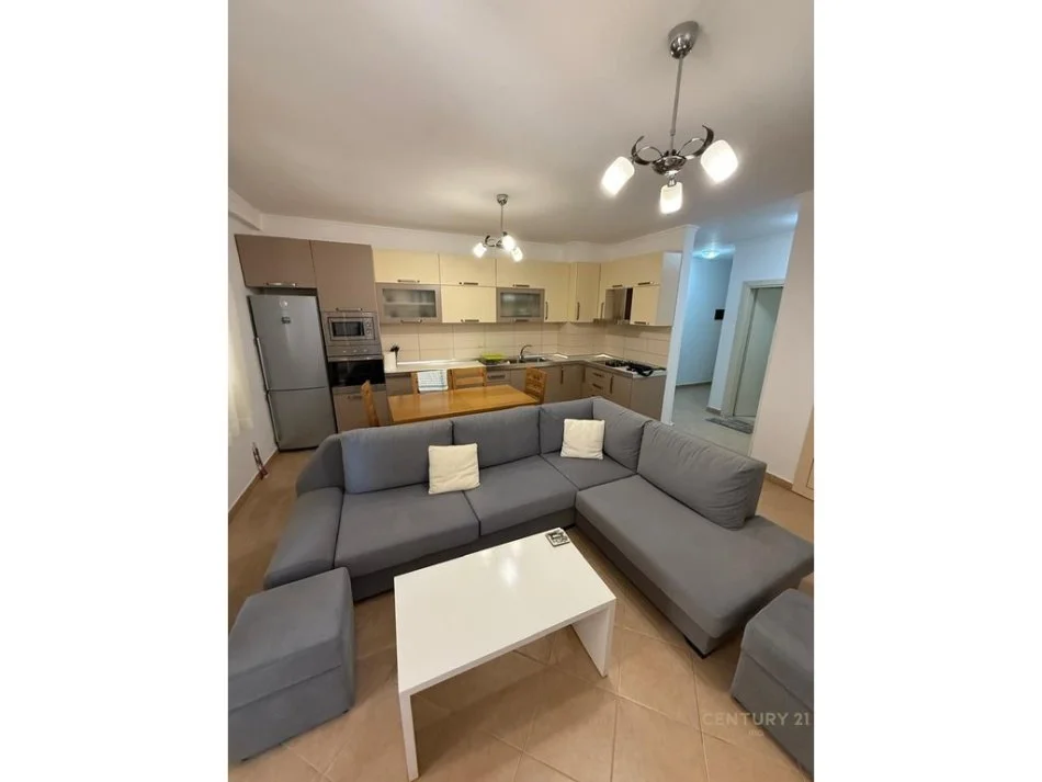Organizimi i tij eshte si me poshte: hyrja me korridor, salloni i ndenjes i lidhur me kendin e gatimit dhe me dalje ne ballkon, dy dhoma gjumi dhe dy tualete. Pallati ne te cilin ndodhet apartamenti lokalizohet ne nje zone lehtesisht te aksesueshme prane Unazes se Madhe. Apartamenti disponon dokumentacion te rregullt hipotekor dhe shitet e mobiluar.