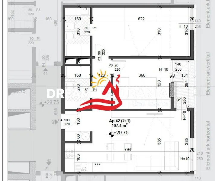 Tek Fusha e Aviacionit, rruga Simon Gjoni, shitet apartament 2+1, me siperfaqe totale 107.4 m² dhe siperfaqe Neto 90.47 m², kati i 8 ne ndertim te ri me ashensor, organizim i rregullt, orientim me diell.