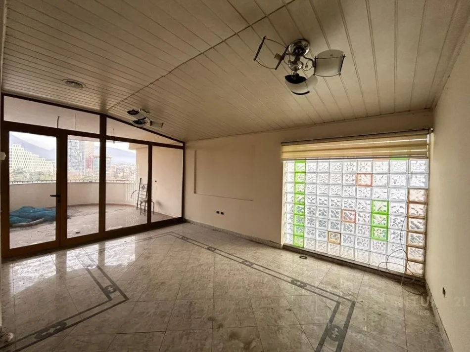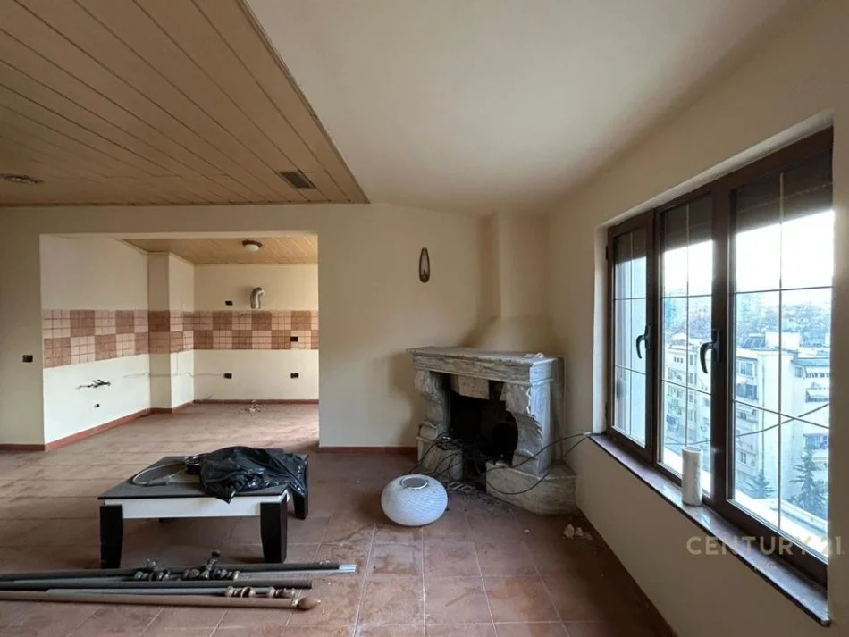 -Sallon ndenje me ambient gatimi, 2 dhoma gjumi, 2 tualete dhe ballkon me pamje panoramike nga qëndra e qytetit.