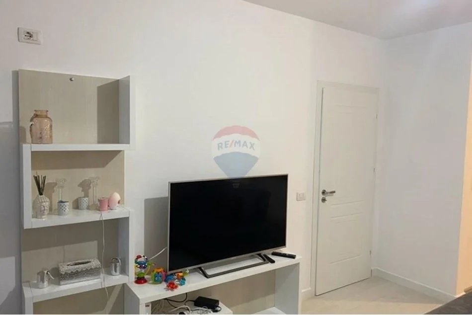 Apartamenti është totalisht i mobiluar dhe organizohet nga dy dhoma gjumi,një ambient gatimi bashkë me ambientin e ndenjes,2 tualete dhe 1 ballkon.