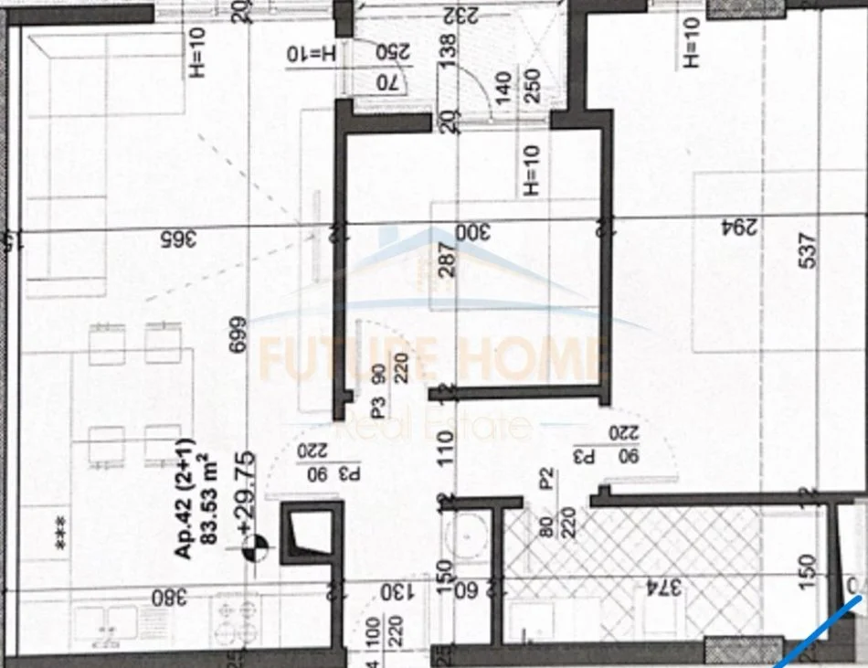 • Sipërfaqja e apartamentit (neto): 85.53 m2.