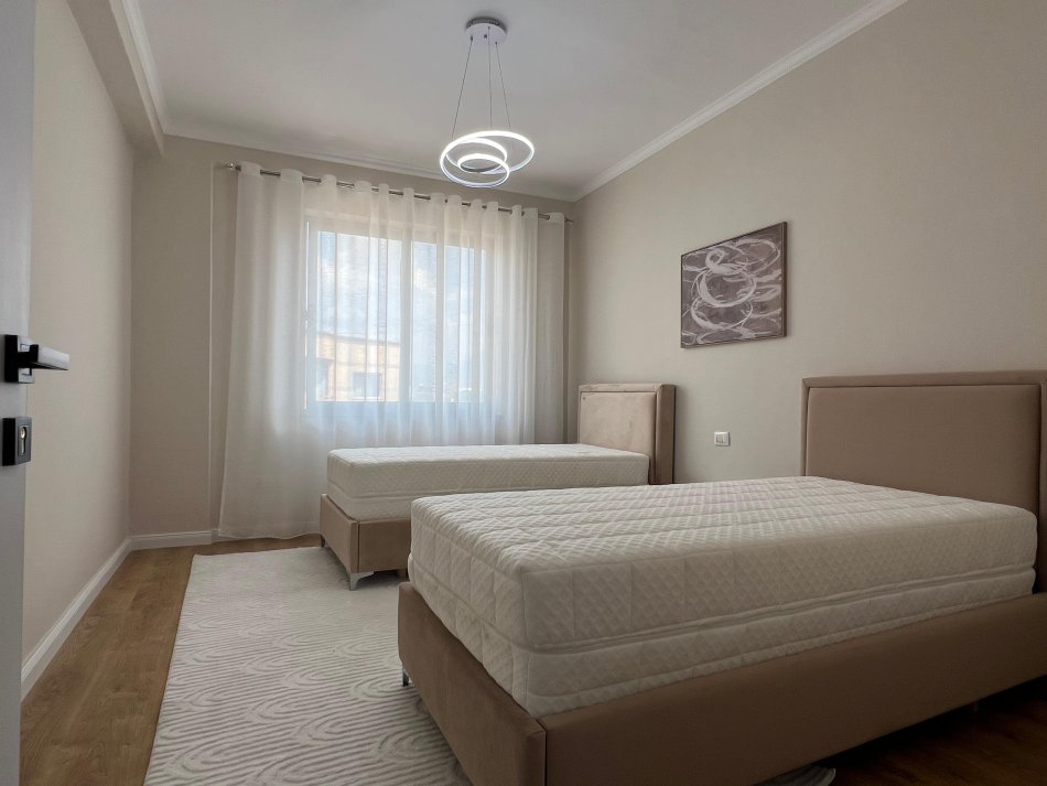 Shenim: (Apartamenti ka orientim V/P ndodhet ne katin e 9,jo te fundit, pallat 10 katesh i mire administruar dhe i paisur me ashensor. Apartamenti eshte i rinovuar dhe i mobiluar me kushte bashkekohore, i pa banuar me pare.Disponon dokumenta te rregullta Hipotekore.)