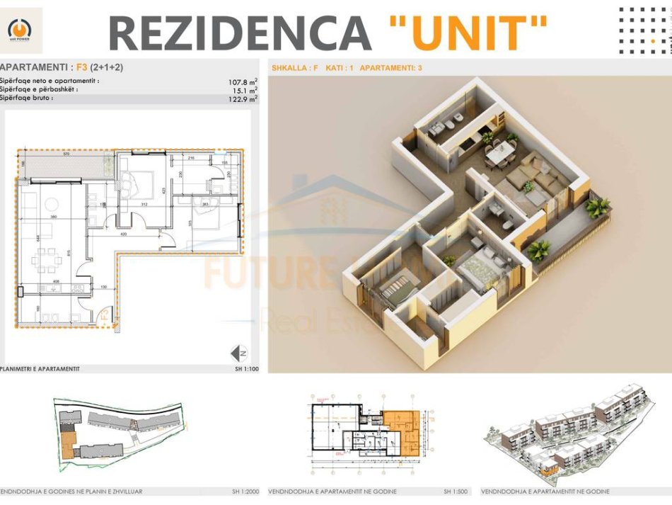• Sipërfaqja e apartamentit (Neto): 107.8 m²