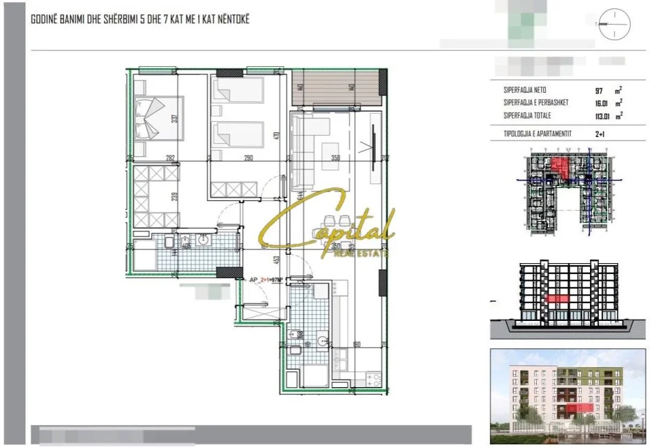 . Siperfaqe totale prej 113.01 m2 dhe neto prej 97 m2.