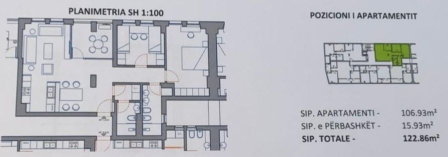 Tirane, shitet apartament 2+1 Kati 2, 122 m²