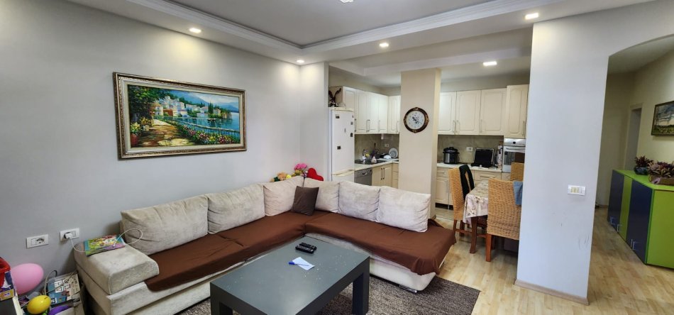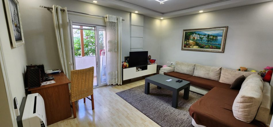 Apartamenti eshte totalisht I mobiluar dhe investuar, parket, tavane te varura ndricim led, kondicionim tokesor.