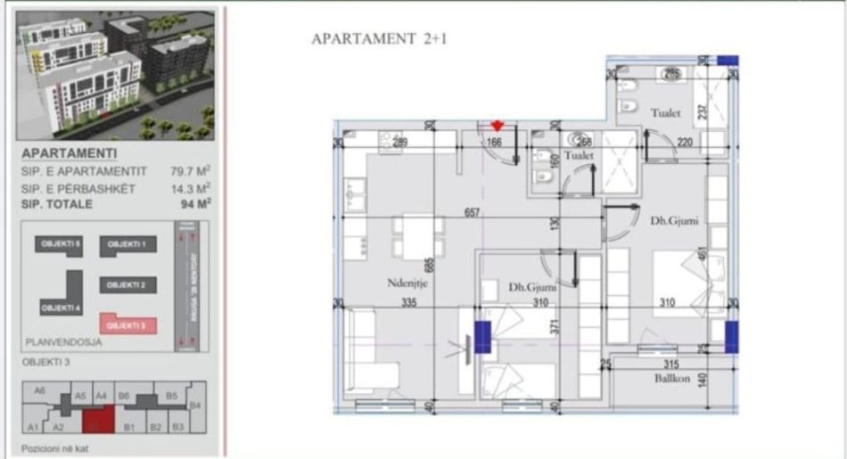 • Tirane, shitet apartament 2+1 Kati 3, 94 m² 122.000 € (ISH DOGANA)