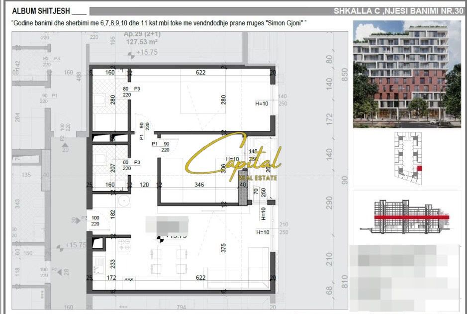 . Organizohet ne : 2 dhoma gjumi, sallon+kuzhine, 2 tualete , korridor shperndares, ballkon .