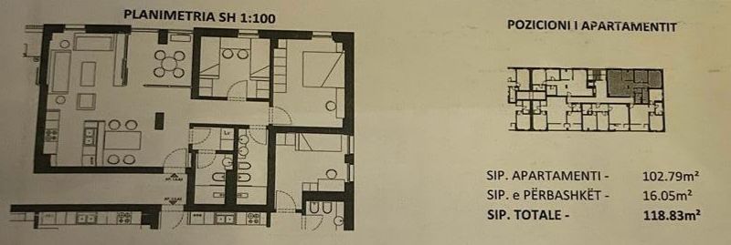 Tirane, shitet apartament 2+1 Kati 5, 128 m²