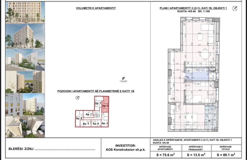 • Tirane, shitet apartament 2+1 Kati 6, 89 m² (VILA L)