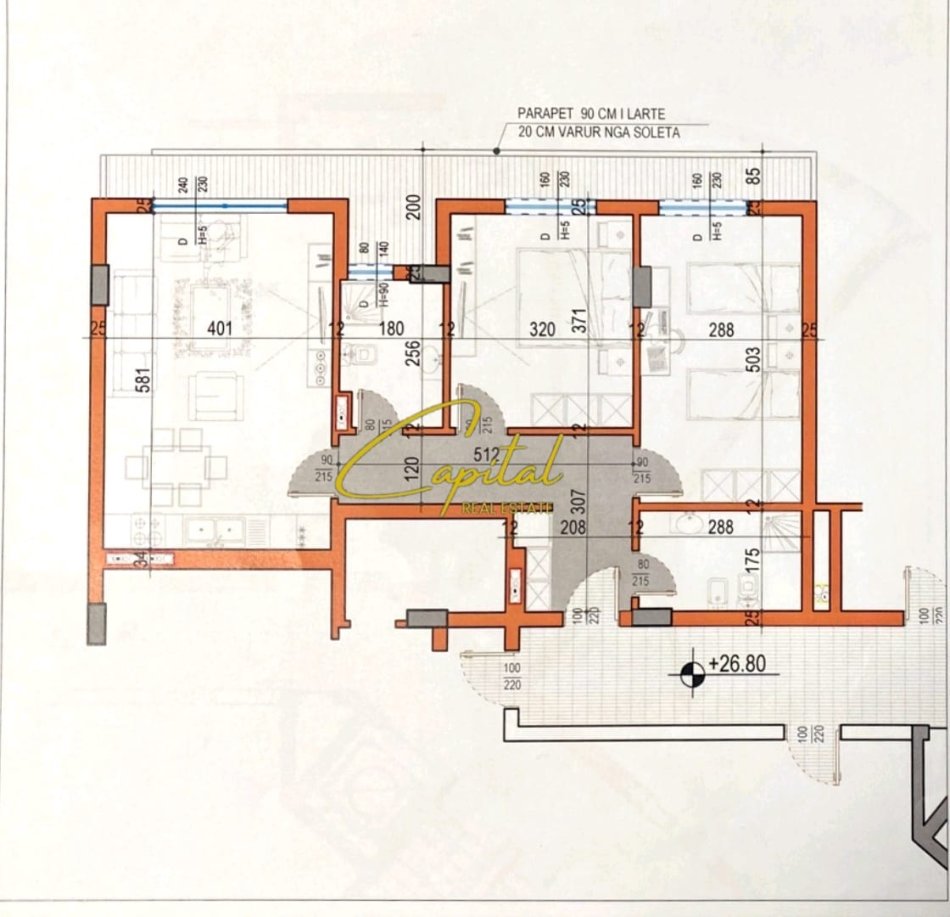 . Organizohet ne : 2 dhoma gjumi, sallon,2 tualete, korridori shperndares, ballkon, kuzhine