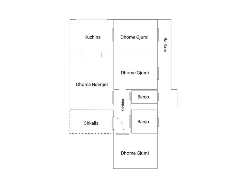 Tipologjia: 3 dhoma gjumi + 1 sallon + 2 tualete (Kati 2)
