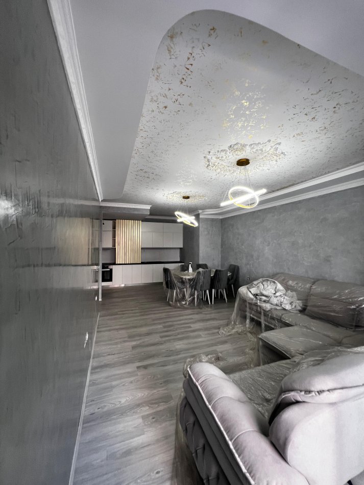 Apartamenti është i sapo mobiluar. Organizohet në ambient ndenje dhe gatimi, 3 dhoma gjumi, dy tualete dhe ballkon.