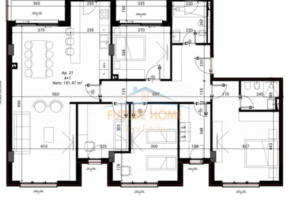 • Sipërfaqja e apartamentit neto: 181.47 m2.