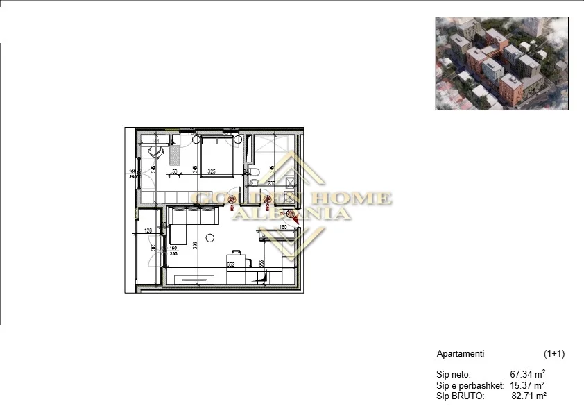 Shiten apartamente 1+1 tek Residenca Splendor Residence” ne Porcelan! Apartamentet kane siperfaqe prej 77.20m² dhe 82.71m² ,organizohen nga nje sallon se bashku me ambjentin e ngrenies, nje dhome gjumi, nje tualet dhe nje ballkon. Kompleksi “Splendor Residence” ndodhet aktualisht në fazë ndërtimi dhe është konceptuar për të ofruar komfort, siguri dhe një stil jetese bashkëkohor, me ambiente të sistemuara, hapësira të gjelbra dhe infrastrukturë moderne. Ndërtimi po realizohet me standarde të larta cilësie, duke përfshirë termoizolim dhe akustikë të avancuar, fasadë të ventiluar dhe ashensorë bashkëkohorë që garantojnë rehati maksimal. Apartamenti karakterizohet nga ndriçimi natyral dhe planimetria e rregullt që ofron funksionalitet dhe komoditet në çdo hapësirë. Është ideal për banim familjar ose për investim afatgjatë, falë cilësisë së lartë të ndërtimit dhe vendndodhjes së favorshme. Përparësitë e zonës dhe kompleksit: Kompleks modern me infrastrukturë të mirëorganizuar; Afërsi me rrugët kryesore dhe linjat e transportit publik; Pranë institucioneve arsimore, supermarketeve dhe qendrave tregtare; Zonë e qetë, e sigurt dhe me perspektivë të lartë zhvillimi “Splendor Residence” është zgjedhja e duhur për ata që kërkojnë një apartament cilësor, me pozicion strategjik ne Tiranës. Cmimi 1650€/m2. Per nje vizite ne prone kontakton