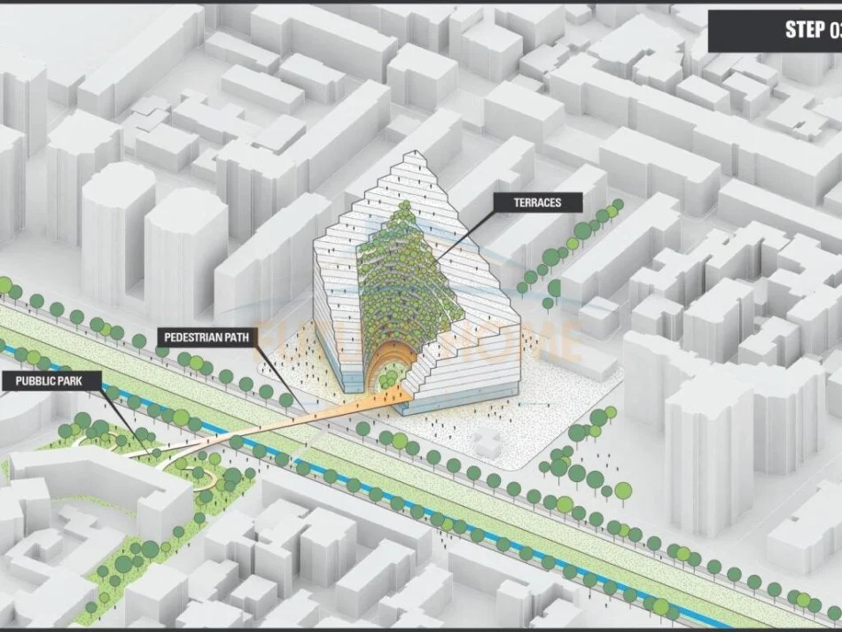 Forma arkitekturore e ndërtesës është frymëzuar nga forma e malit të Dajtit. Ky projekt thekson hapësirat e gjelbra dhe zonat e përbashkëta që favorizojnë ndërveprimin mes banorëve. Godina multifunksionale Ekspozita Building, do të ketë një lartësi totale prej 93 metrash, me 24 nivele mbi tokë dhe 5 nëntokë.