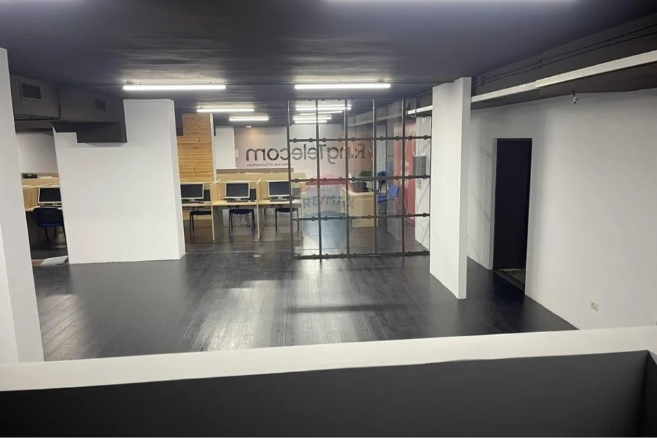 Ambjenti ndodhet prane Sheshit Wilson, buze rruge.Siperfaqja totale e ambjentit eshte 340m2 open space, fasade xhami 11 metra e dukshme nga kalimtaret.