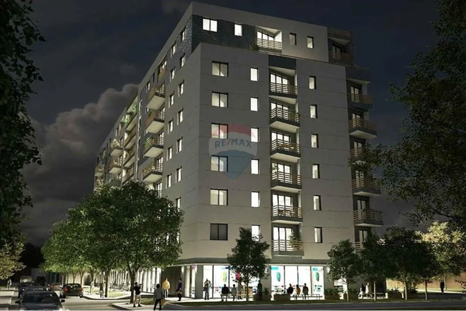 Godina eshte projektuar per tre katet e para ambiente komercialele.
