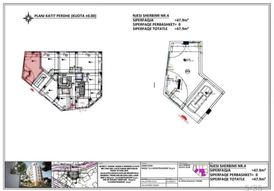 me siperfaqe 54 m² dhe 47.9 m²