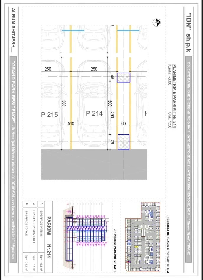 Shitet post parkimi, tek kompleksi i banimit Grand Park Residence, siperfaqe totale e postit 33.3 m2.