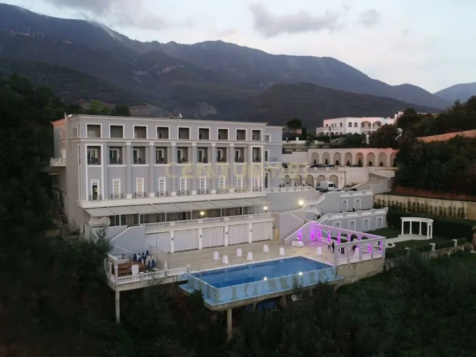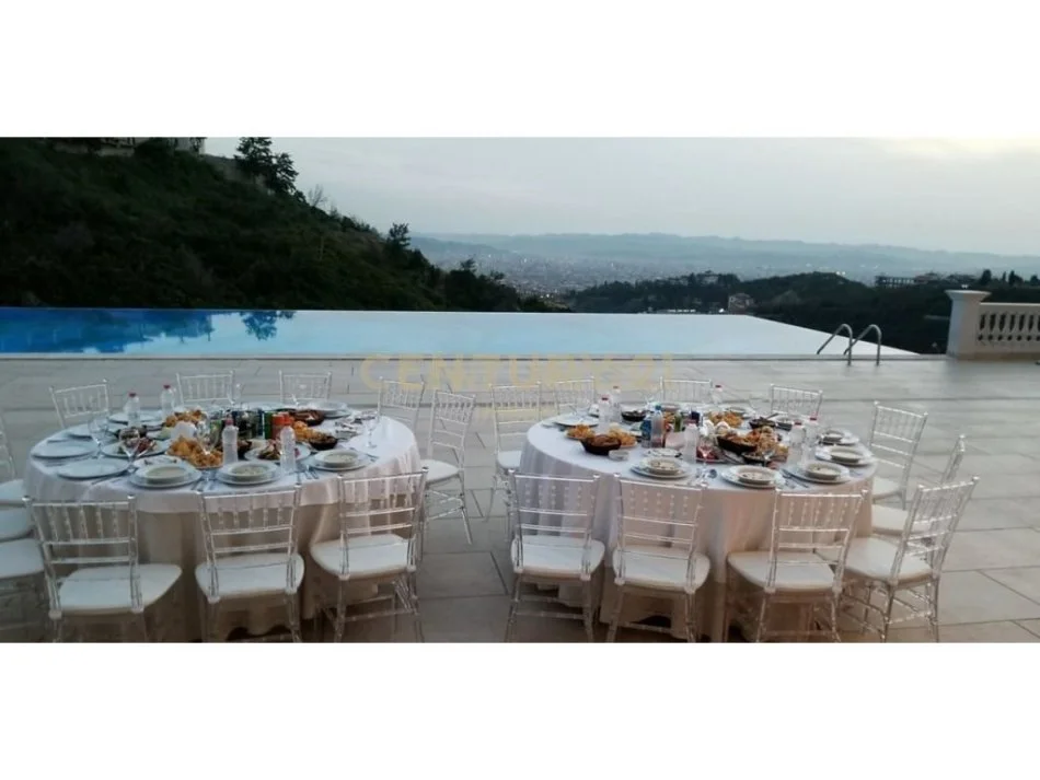 Dy veranda me siperfaqe 200m2 secila ,një altar për ceremoni,pishinë rreth 200m2 me shezllone dhe bar restorant.