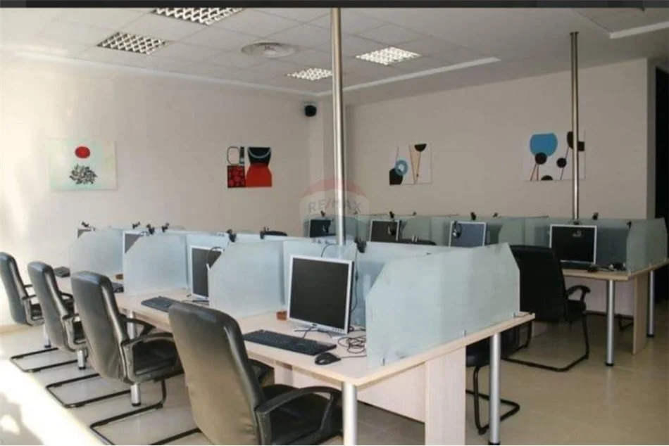 Ambjenti i zyres ka nje siperfaqe 146m2, kati 2, pallat i ri, me shkalle elektrike, open space