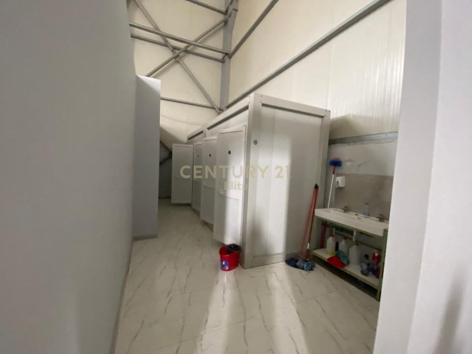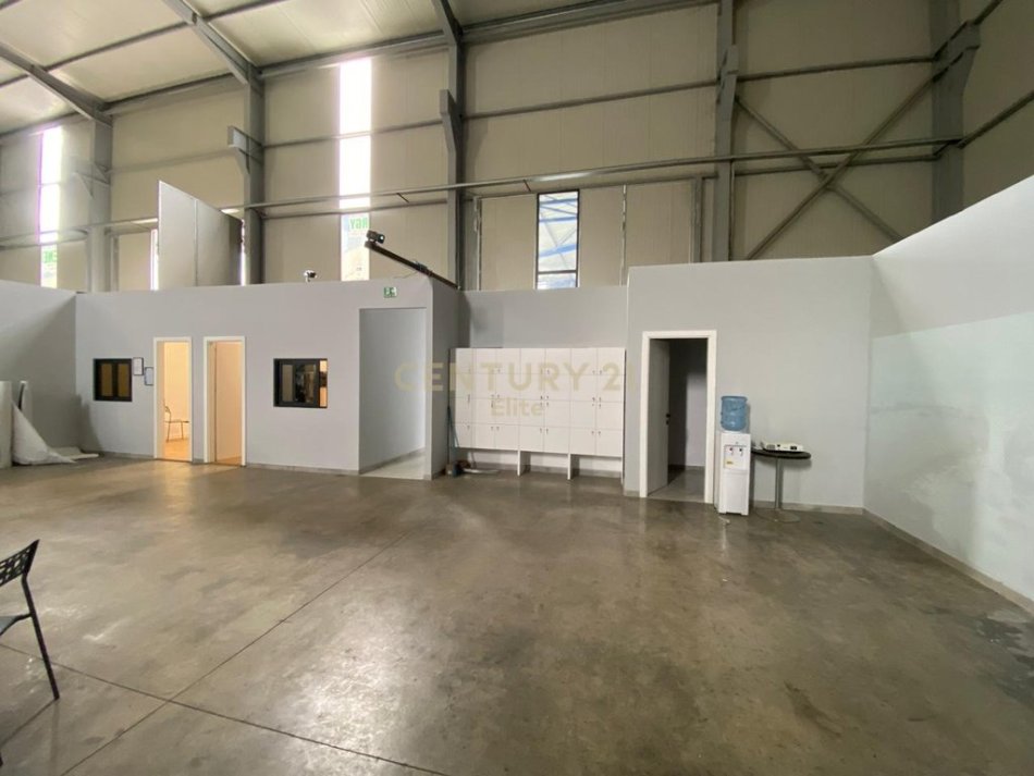 Shitet kapanon ne rrugen dytesore vore-tirane. Magazina ndahet ne dy hapesira, njera ka siperfaqe 830m2 dhe lartesi ne kulm 11m ndersa magazina tjeter ka nje siperfaqe prej 280m2 dhe lartesi 6m. Trualli ka një sipërfaqe prej 2200 m². E pershtatshme per magazinim, showroom, investim dhe qellime te tjera biznesi.