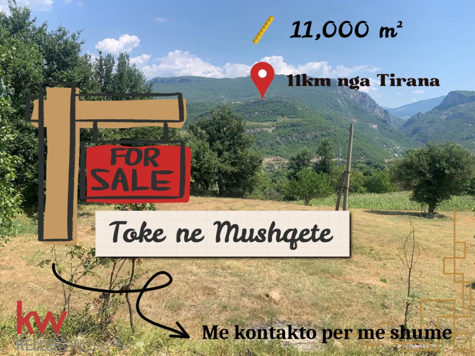 Toka prej 11,000 m², vetëm 11 km nga Tirana, me akses në Rrugën e Vjetër të Elbasanit, e mbjellë me ullishte. Ofron mundësi për zhvillim biznesi, si: