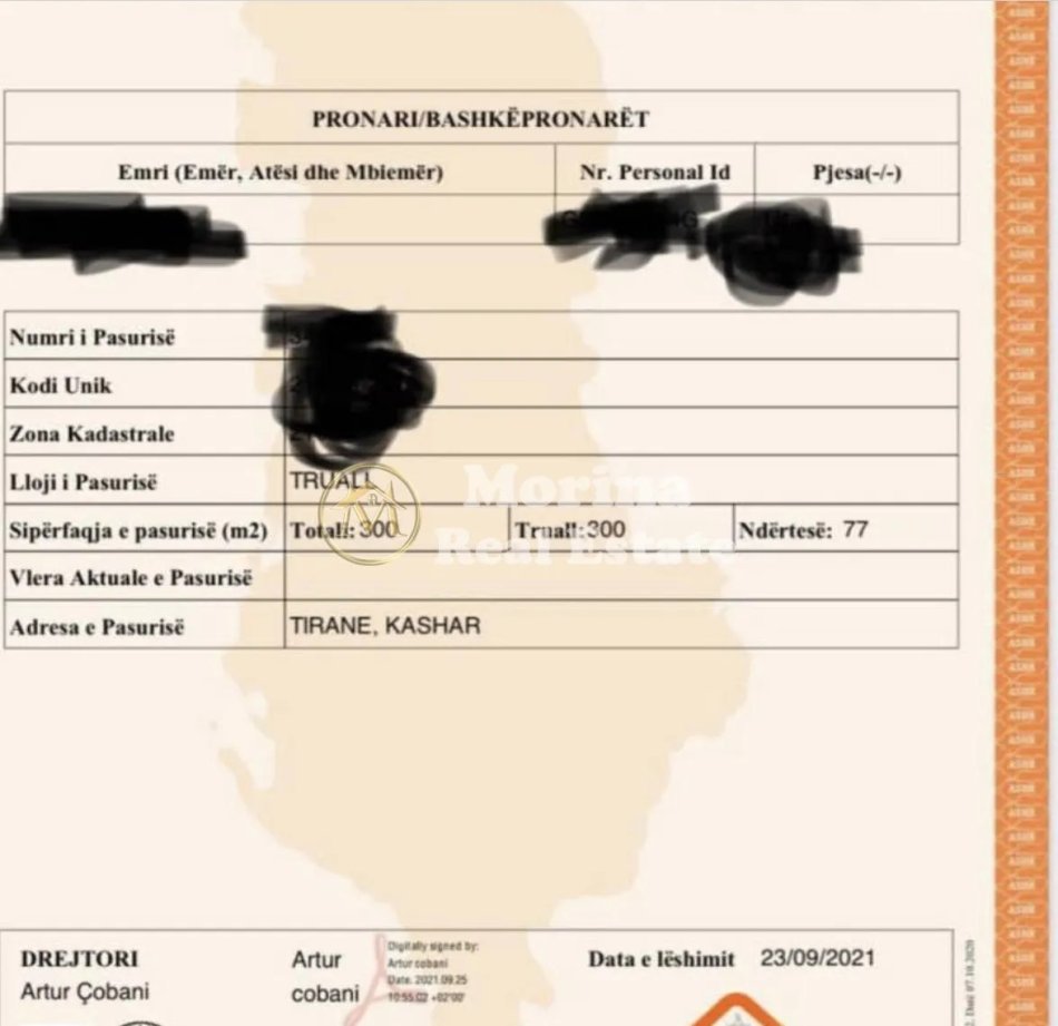 Shitet toke me nje siperfaqe prej 300 m², e cila ndodhet ne Kashar.