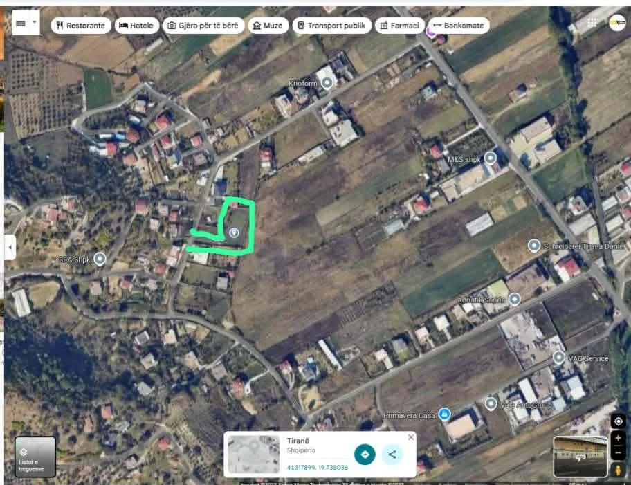 Ofrohet për shitje një parcelë toke me sipërfaqe totale prej 1,250 m², e pozicionuar në zonën e Prushit, Tiranë.
