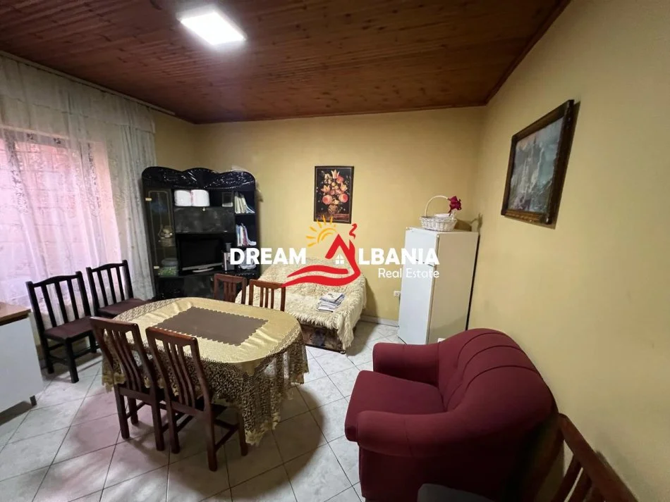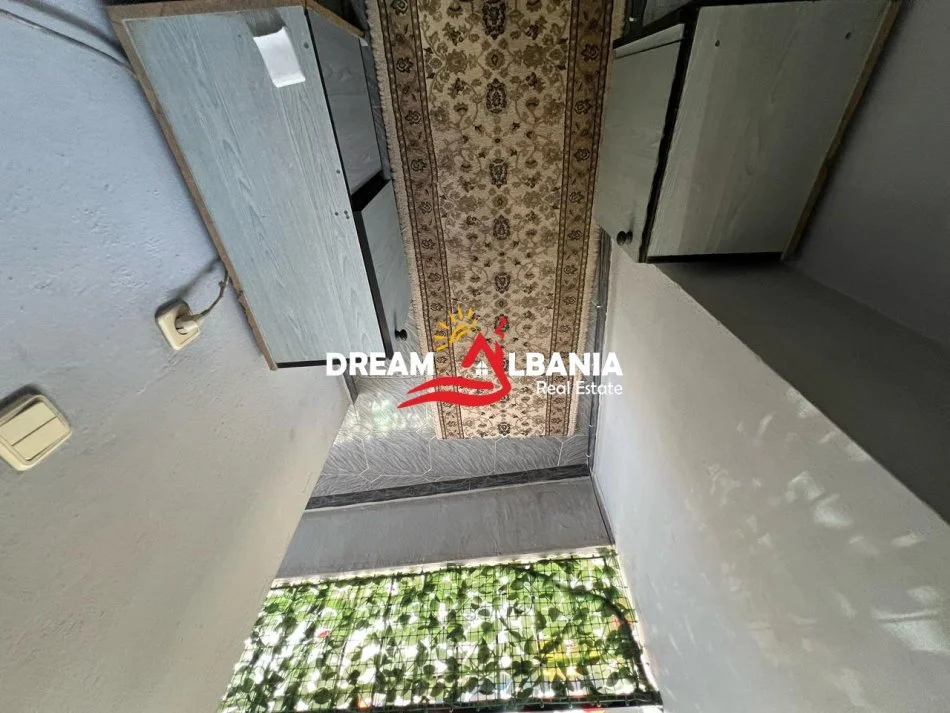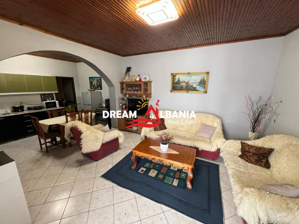 Nje ndertese 1 kateshe ne forme L qe eshte e ndare ne 5 dyqane te dhene me qera dhe nje shtepi private 2 kateshe me njolle ndertimi 75m2.