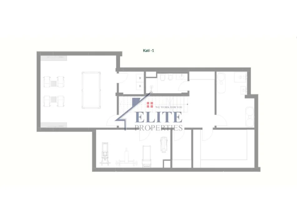 Kati -1 organizohet në palestër, lavanteri, sallë lojrash, ambient teknik dhe një tualet