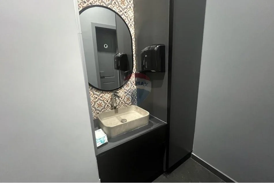 Ambjenti ka hyrje te dedikuar per pjesen e bizneseve/zyrave, ka dy vetrata qe ben te mundur reklamimin e biznesit pasi njera nga fasadat ka shikueshmeri te larte nga Rr. "Kavajes".