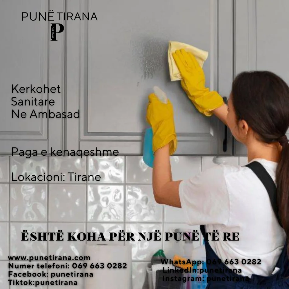 30.08.2024, 20:27 DurresLRS Vacant position - Cleaner Tirane Tipi me orar te plote Fusha | Profili i punes Sanitare | Pastrim | Mirembajtje Gjuha Gjuha? Eksperienca me dhe pa eksperience PUNË TIRANA Kontaktoni ne WhatsApp per me shume informacion Cel. : +355 69 66 30 282 WhatsApp