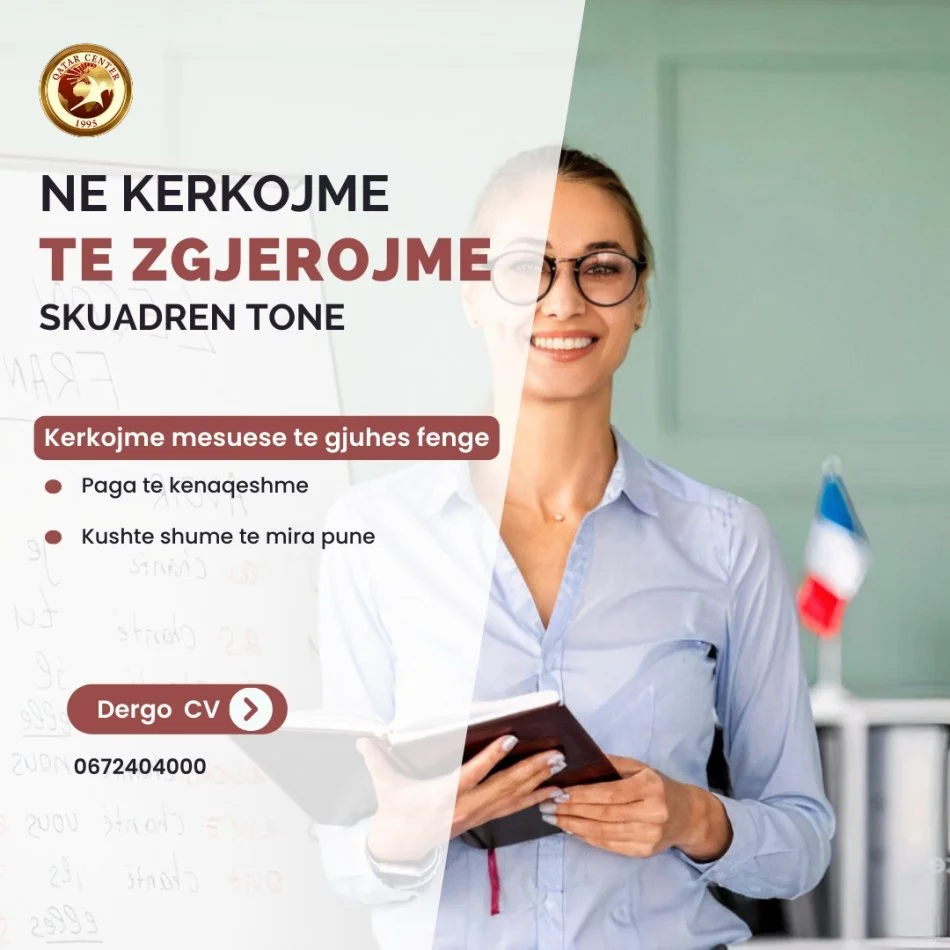 Po zgjerojmë ekipin tonë dhe ju ftojmë të bëheni pjesë.Kërkojmë një individ të përkushtuar për të ndihmuar studentët tanë të zhvillojnë aftësitë e tyre në gjuhën frënge.Cfarë pret?
