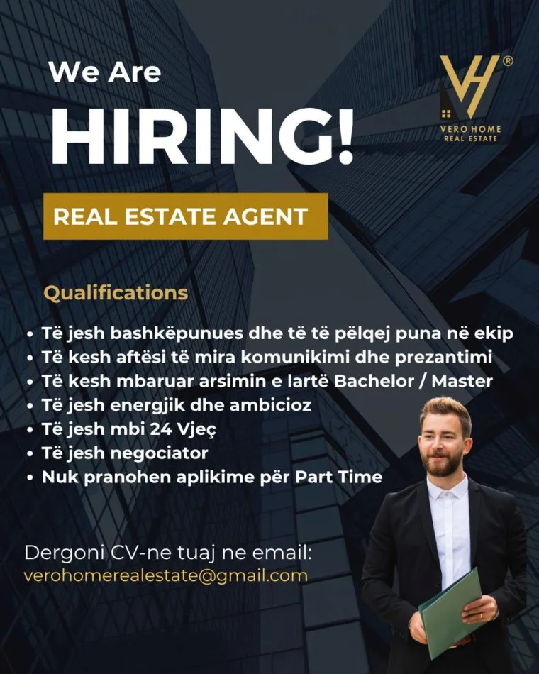 Vero Home Real Estate®️ Eshte në kërkim të një AGJENTI IMOBILIAR! 🏡 NA KONTAKTONI 0676722221