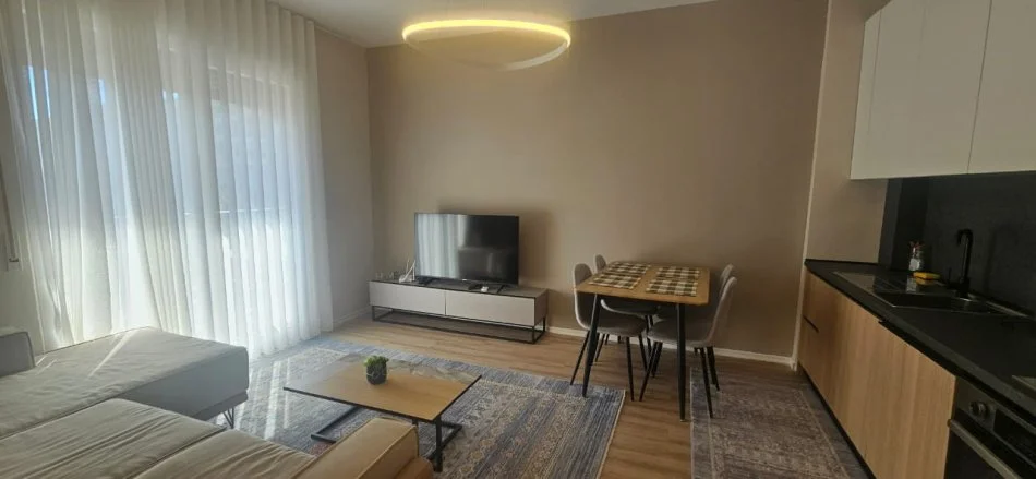 1 dhome gjumi, një ambient ndenjeje me kuzhinën, 1 tualet dhe ballkon që ofron pamje panoramike nga deti dhe mali.