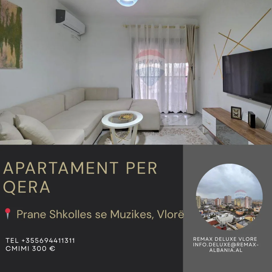 Vlore, jepet me qera apartament 1+1 Kati 7, 65 m² 300 € (Lef Sallata, pranë Shkollës së Muzikës)