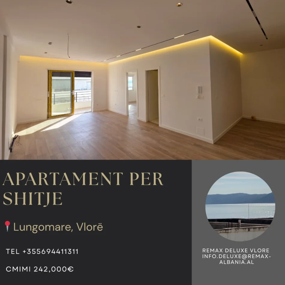 Në një nga zonat më të kërkuara të qytetit, vetëm pak hapa nga Lungomarja dhe pranë çdo shërbimi kryesor, ofrohet për shitje një apartament modern me sipërfaqe 110 m², i pozicionuar në katin e 10-të të një pallati të ri (2025).
