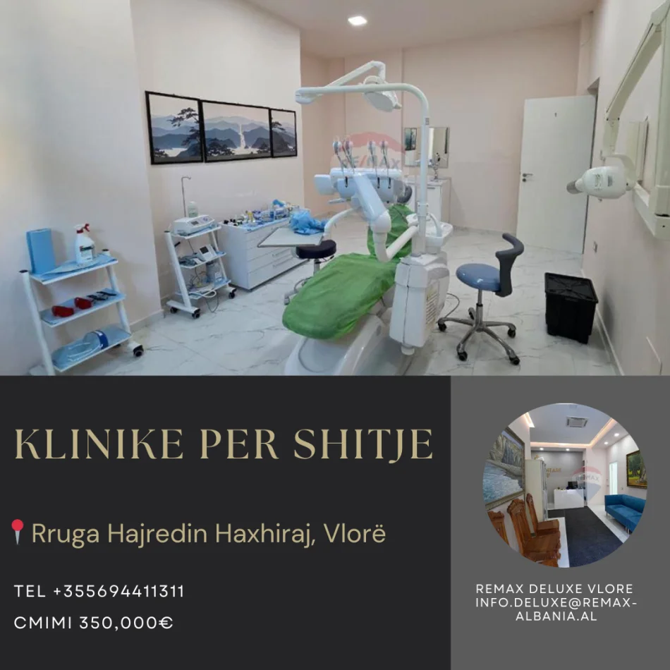Ofrohet për shitje një klinikë dentare moderne, plotësisht e pajisur dhe funksionale, e gatshme për t’u marrë në dorëzim menjëherë. Një mundësi ideale për profesionistë të fushës ose investitorë që kërkojnë një biznes gati për operim, pa kosto shtesë fillestare.
