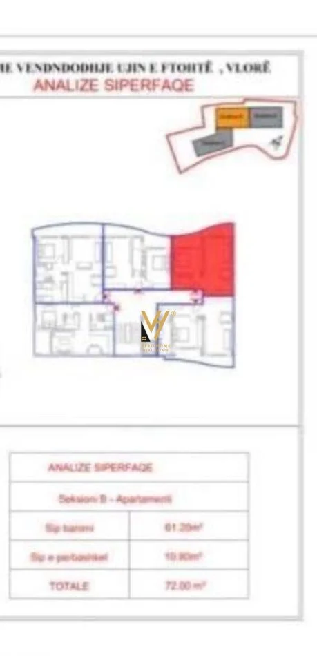 Sipërfaqe totale: 72 m²