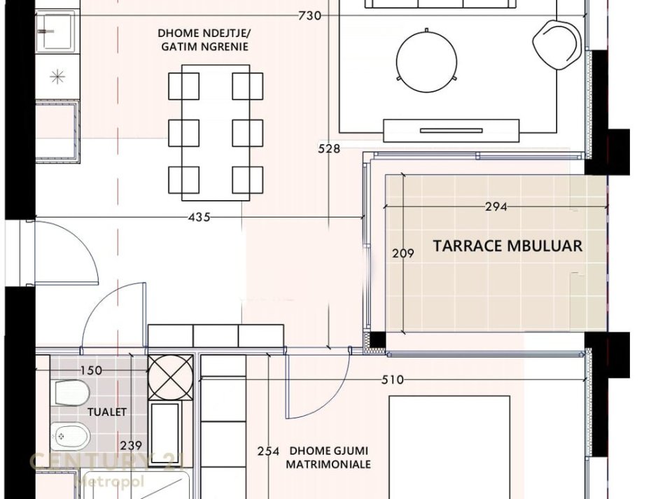 Apartamenti qe ofrojm ka siperfaqe 75.4 m2 bruto.