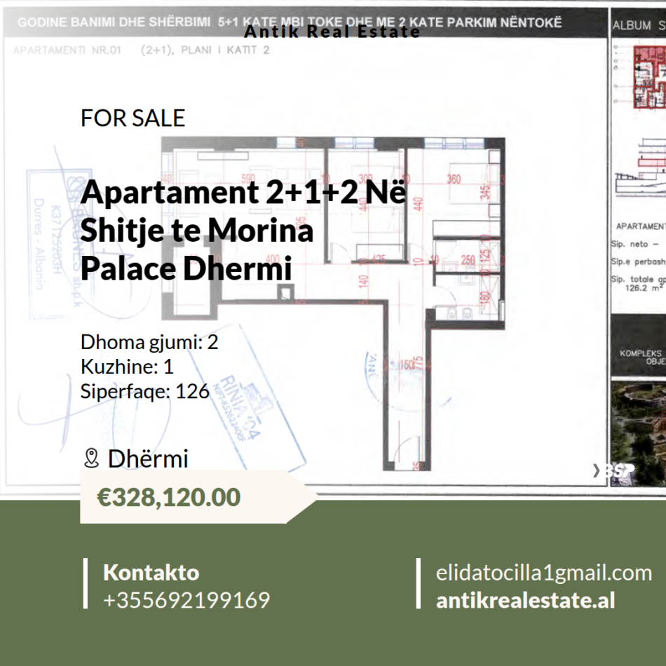 Apartament 2+1+2 Në Shitje te Morina Palace Dhermi!