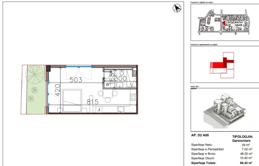 – Sipërfaqe totale: 56.42m² (bruto)