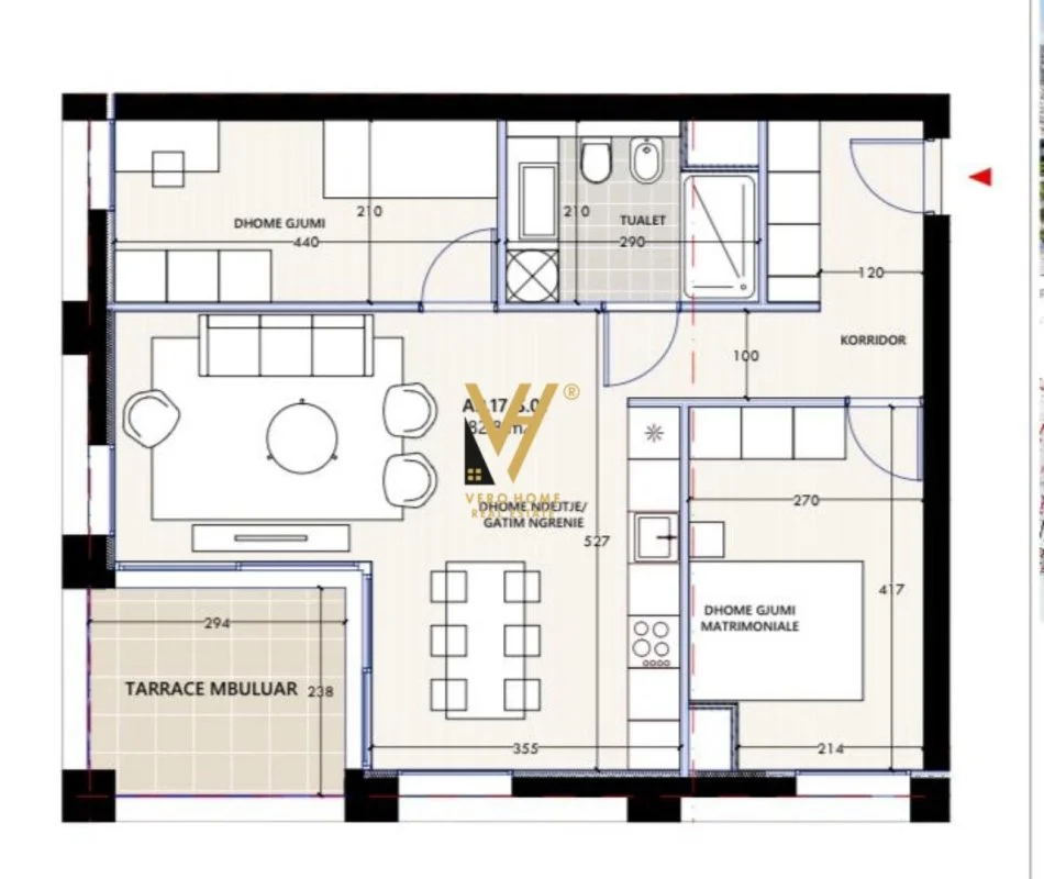 Siperfaqe neto: 82.8 m2
