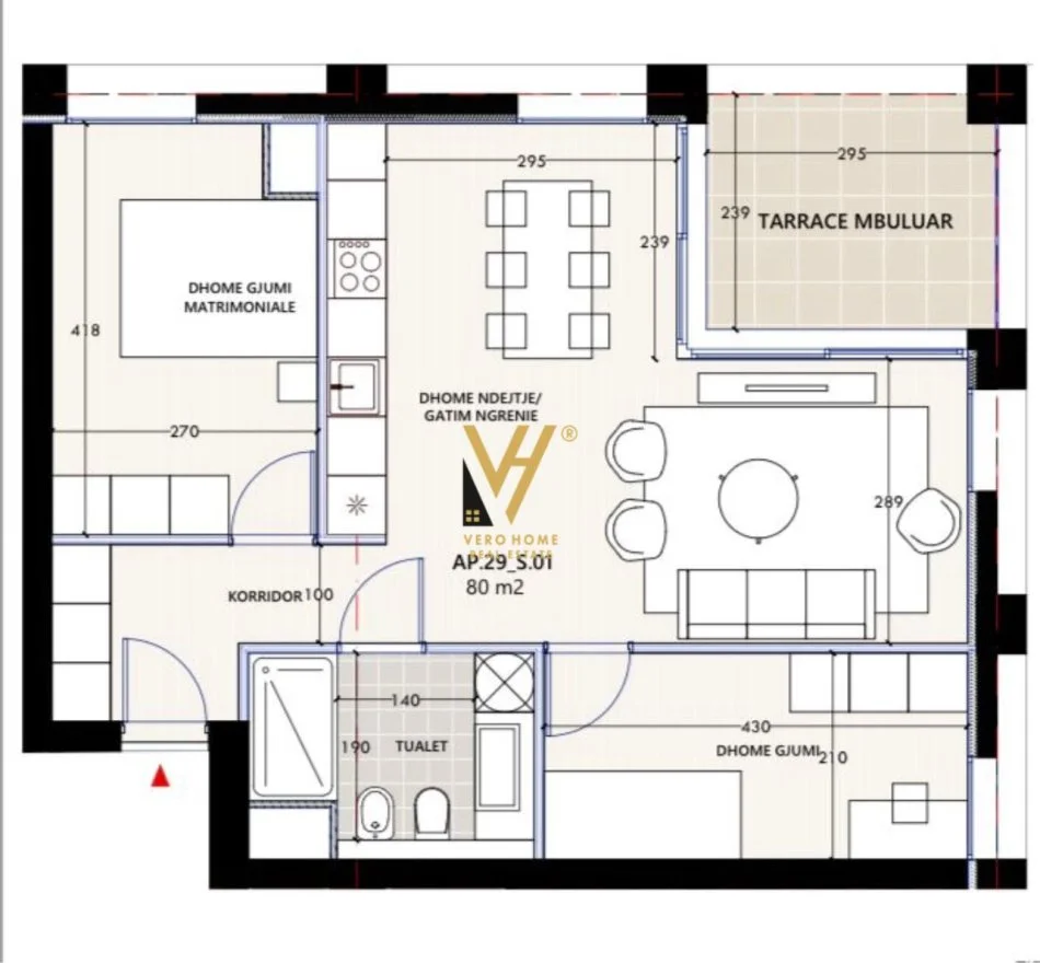 Siperfaqe neto: 80 m2