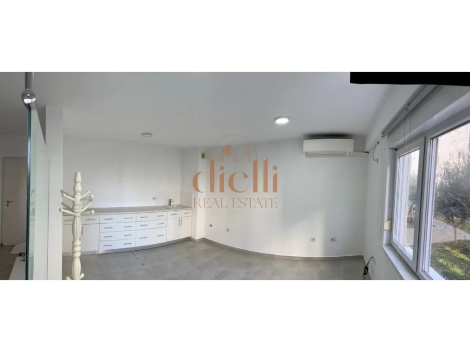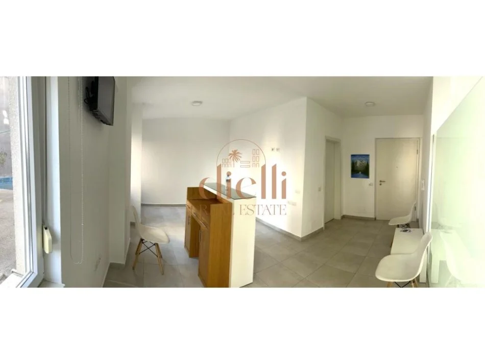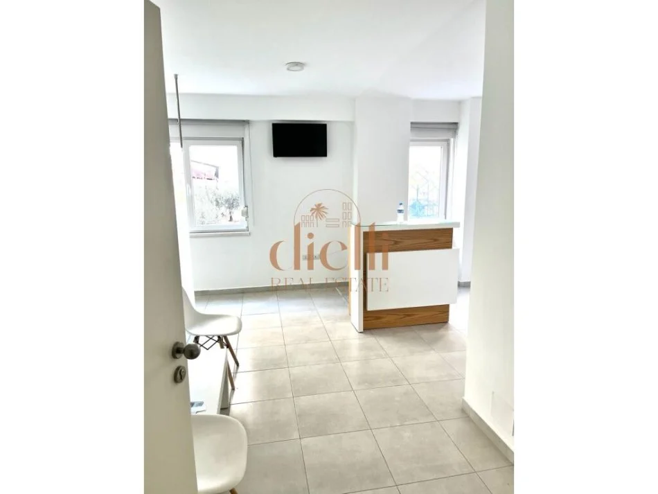 Zyra ka siperfaqe 55 m2, ka nje ndarje ne dy dhoma dhe nje tualet.